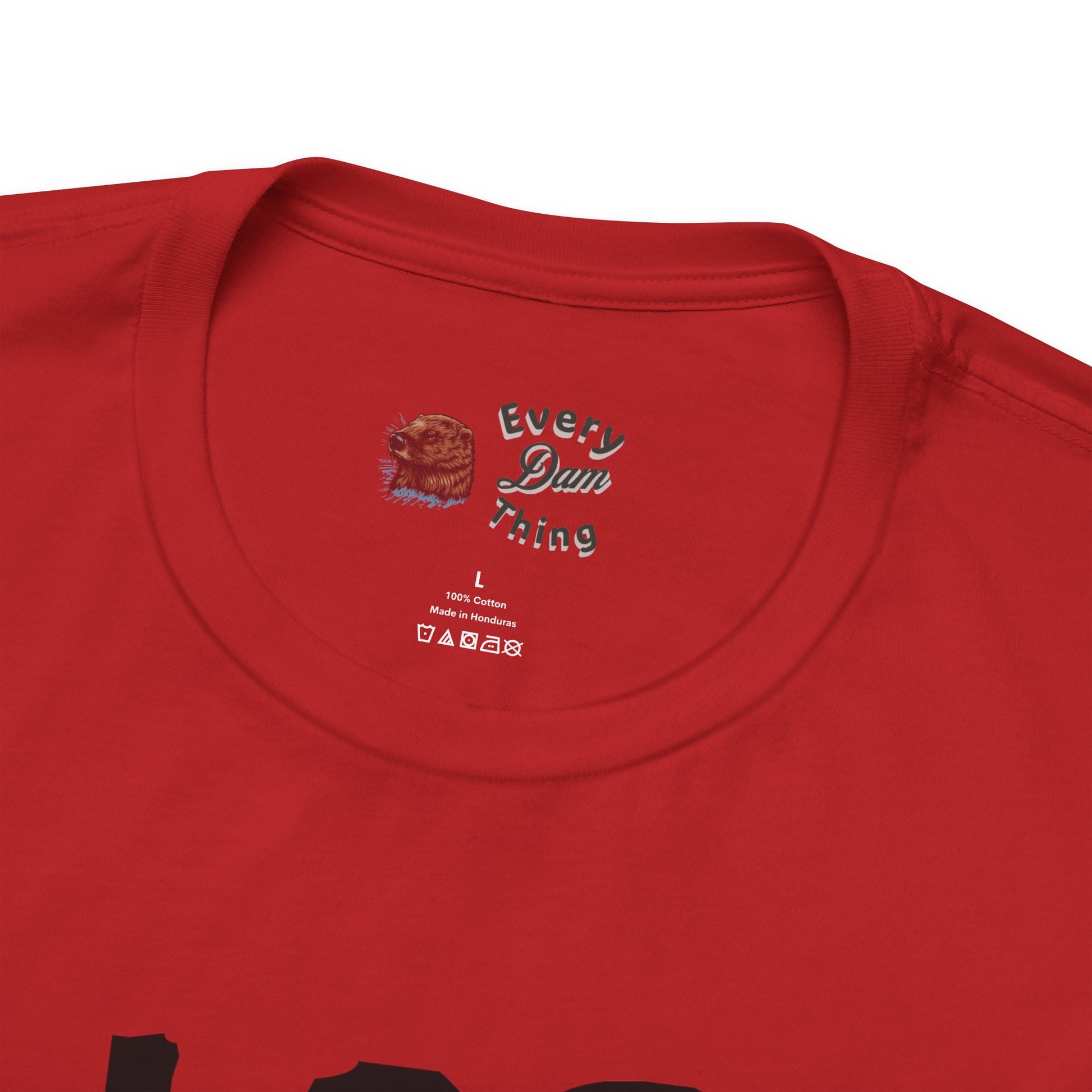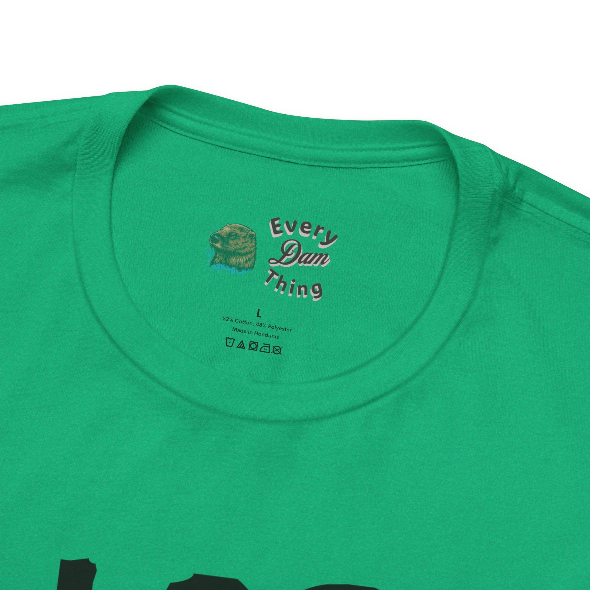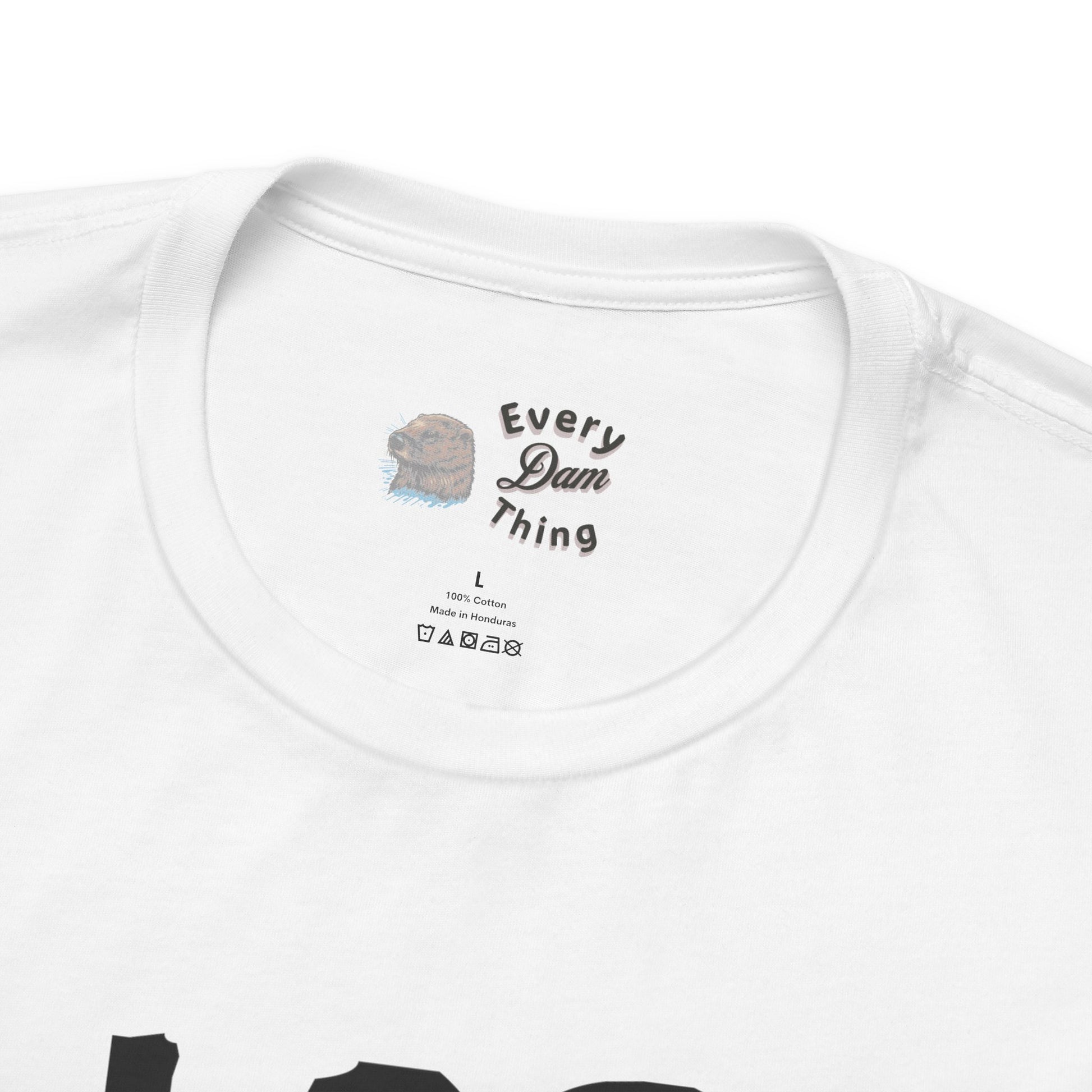 - Ribbed knit collar with seam and tear-away label for comfort